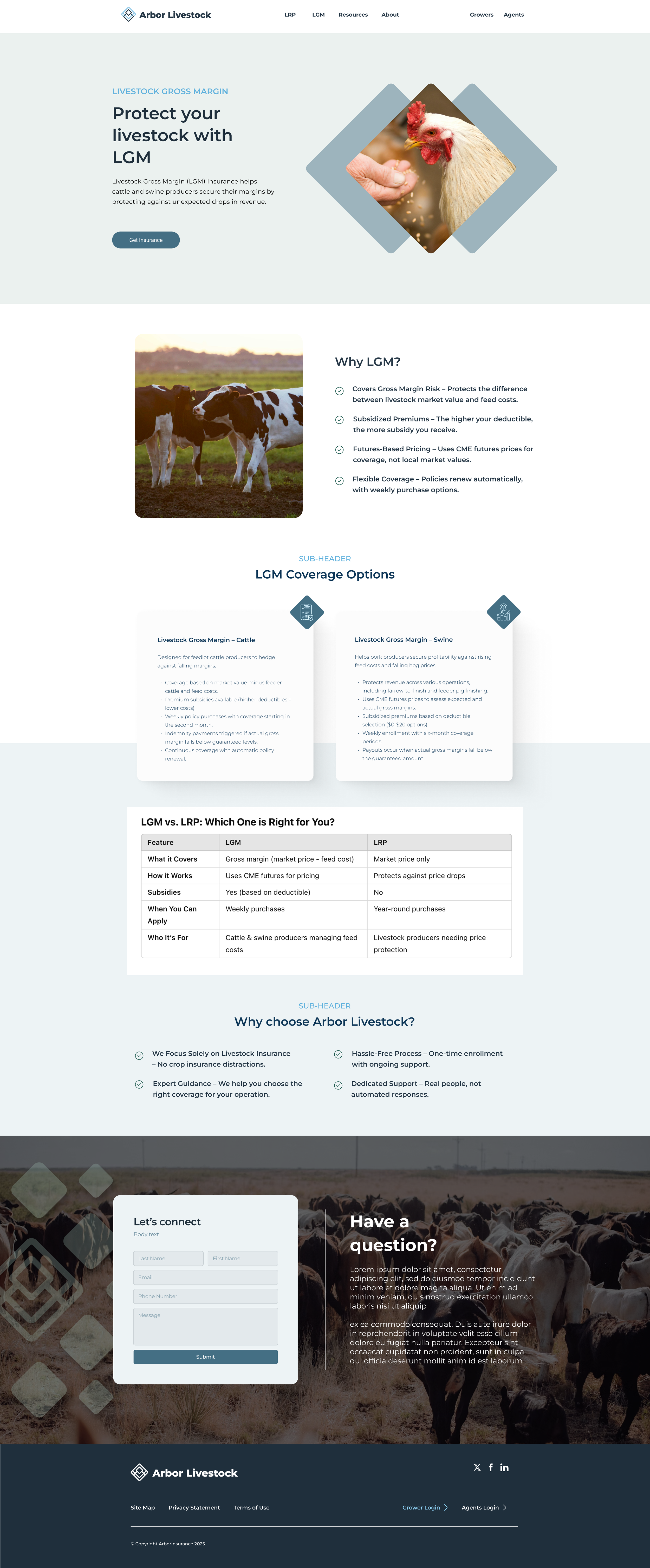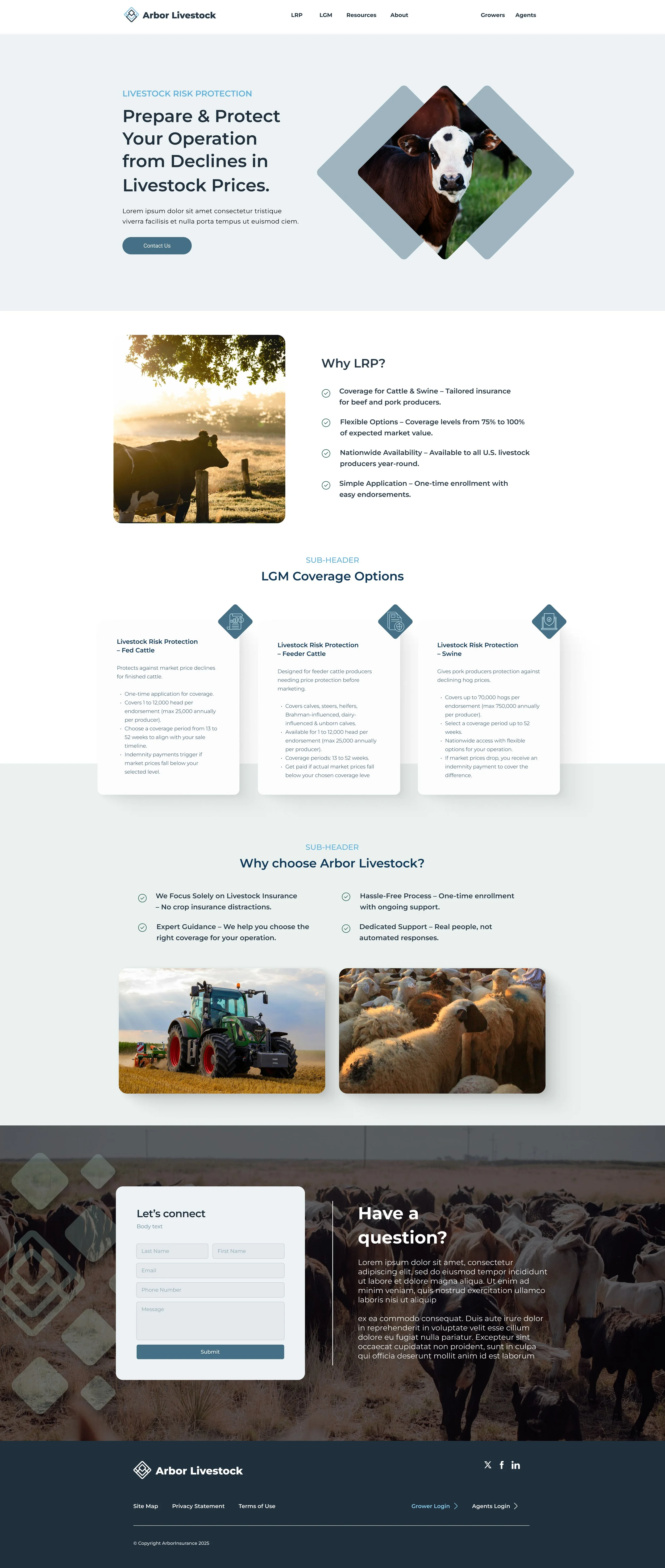 For Arbor Livestock, I elevated their brand identity by cleaning up and refining their existing logo, ensuring it felt professional while staying true to their roots. From there, I designed a new website that gave them a modern, organized platform to showcase their livestock and services.