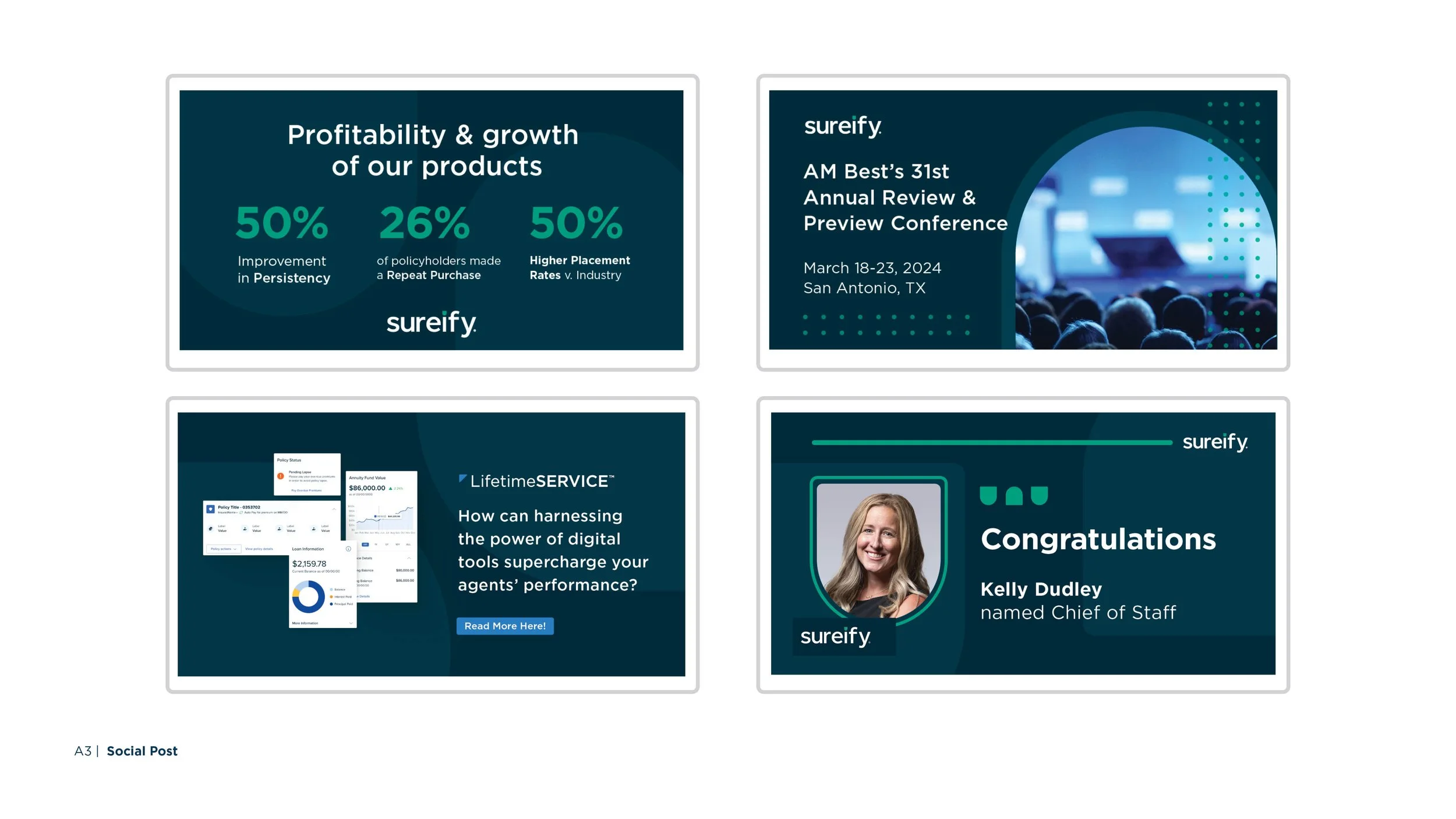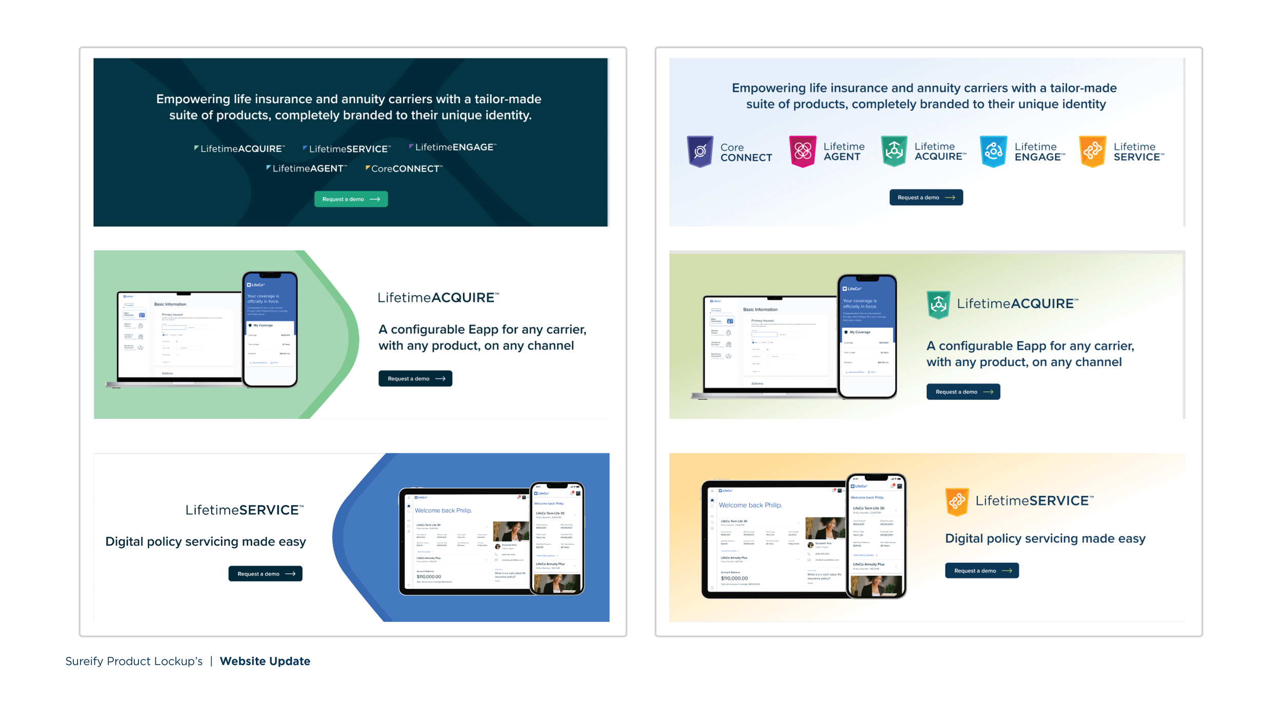 As part of Sureify’s evolution in the life insurance and annuity technology space, I led the creative refresh of the brand to better reflect its innovative yet trusted positioning. The previous identity felt overly corporate and dated, so the rebrand introduced a cleaner, more cohesive visual system with a modern edge.
